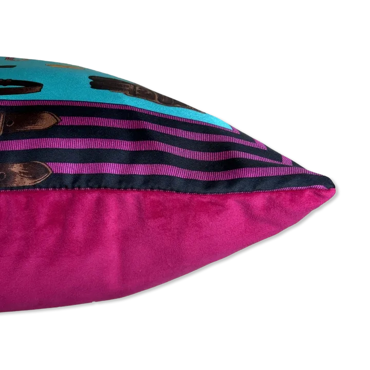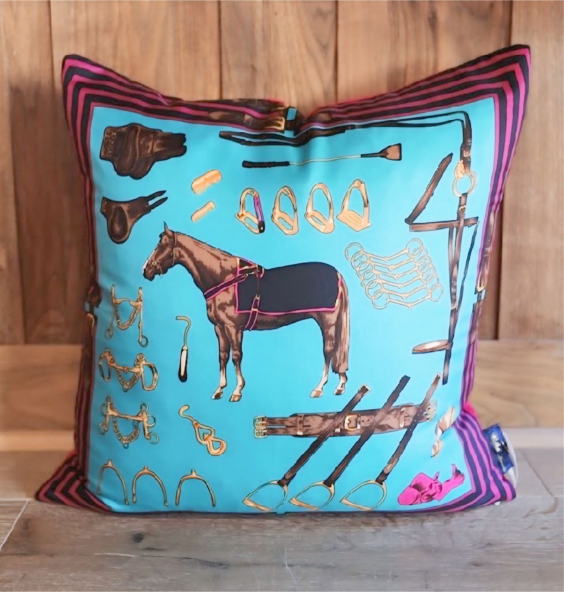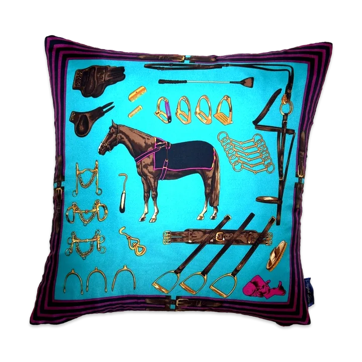 Equestrian Turquoise Vintage Silk Scarf Pillow