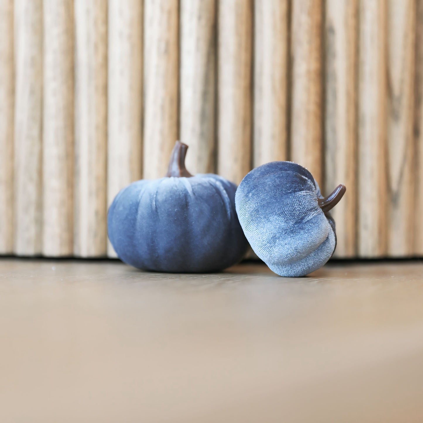 Express the spirit of fall with our faux rustic harvest velvet pumpkins that feature a stunning palette of rust orange, yellow, grey, or green
