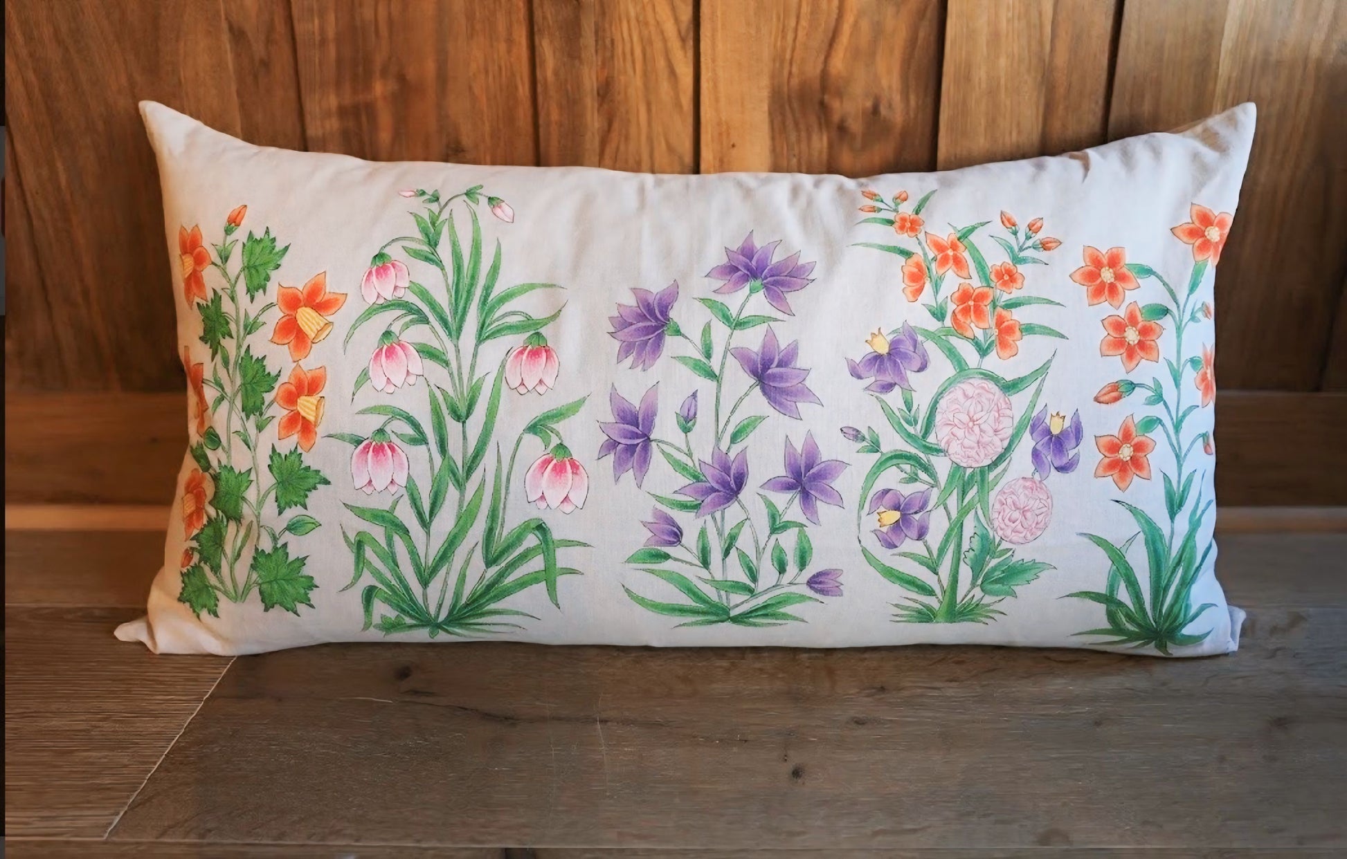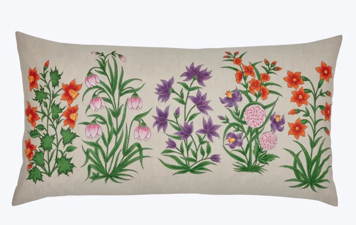There's no kind of party we love more than a garden party. This decorative pillow features hand-painted flowers.