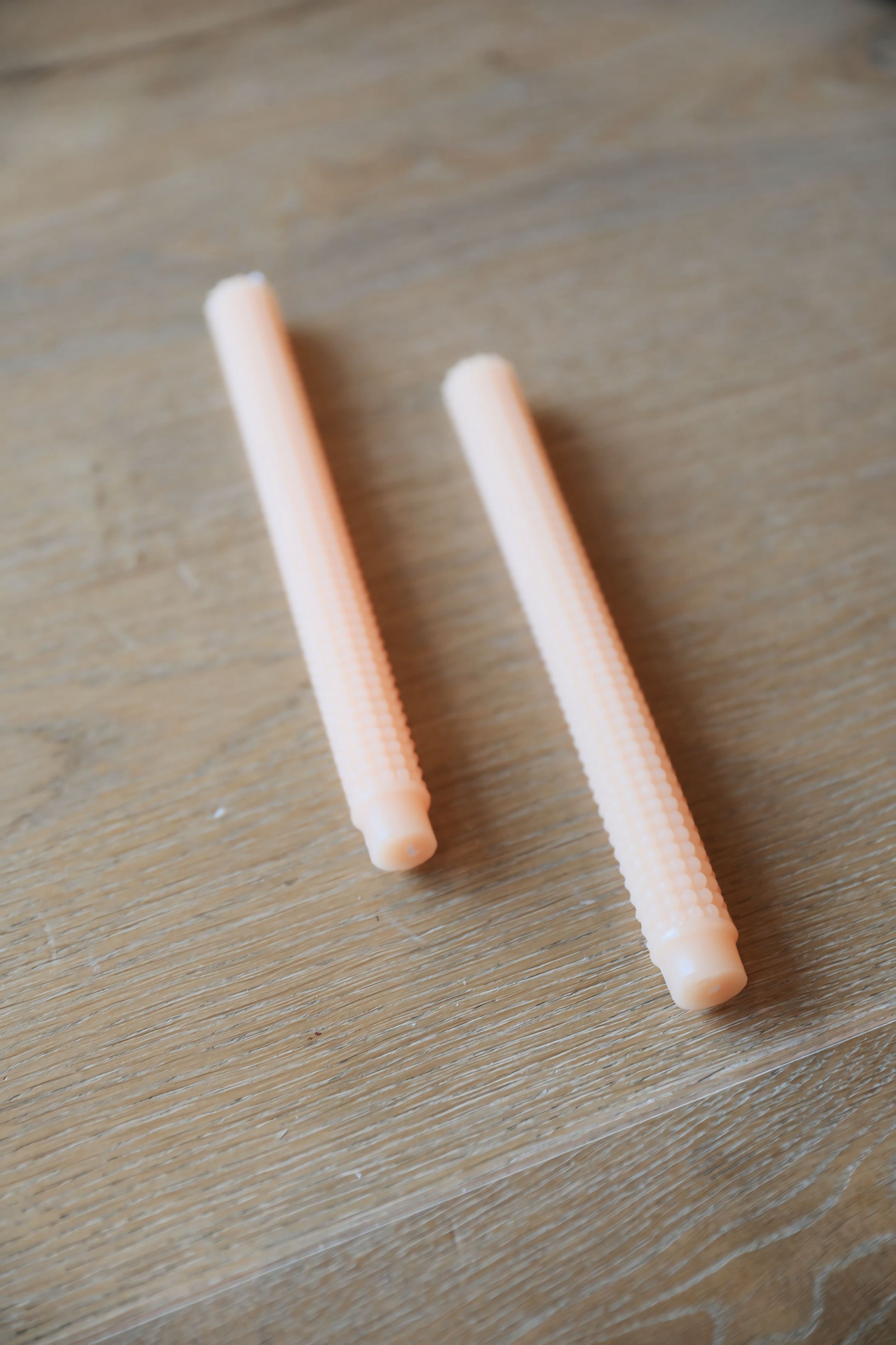 This intricately carved set of taper candles showcases a striking hobnail design. Mix and match the hues and sculptural silhouettes of our artfully crafted totems and tapers for a refined candlelight arrangement on a dining table or mantelpiece.