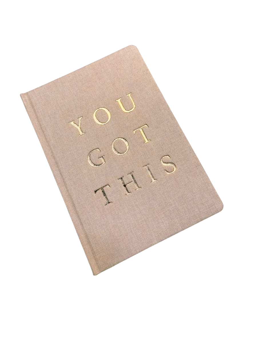 Write down all of your goals and dreams in our You Got This tan and gold fabric journal! With this chic, stylish, easy to write on notebook, there's no better place to jot down motivational notes, inspirational quotes, lists, and all of your great ideas. Pair this journal with our You Got This devotional and pens!